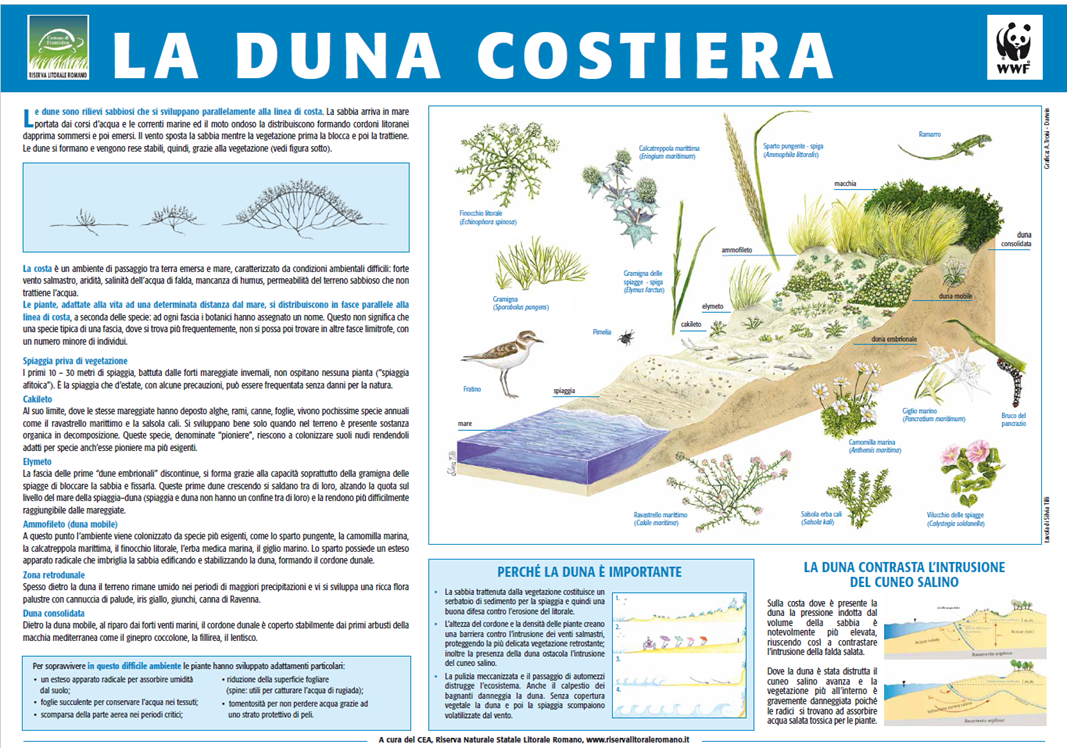 ASPETTI AMBIENTALI DELLA DUNA E ADATTAMENTI DELLE PIANTE ai diversi parametri ambientali con cenni sulla loro variazione tra la battigia e la retroduna (esposizione a salinità e vento, compattazione e arricchimento del suolo, presenza di acqua salmastra).