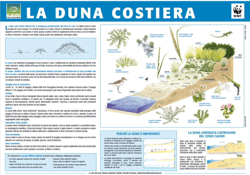 CONSERVAZIONE DELLA DUNA con approfondimento sulla scomparsa dei sistemi dunali, sulle specie protette (flora e fauna) e specie invasive o introdotte. Cenni sulle strategie di protezione e conservazione (passerelle, barriere frangivento, aree protette ecc.)